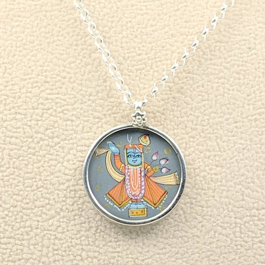 Adisthana Handpainted Shrinathji Chain Pendant With Earrings