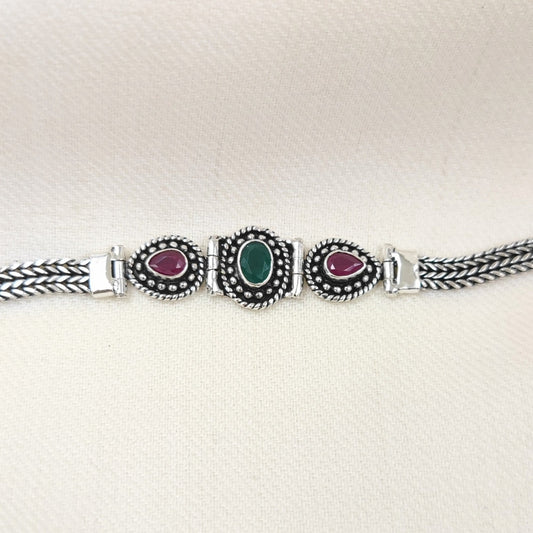 Reminiscent of the moon playing peek-a-boo from behind the dark monsoon clouds, dotted with vibrant colors enameled on a canvas of sleek silver cut out to perfection, these are the pieces you'll reach for time and again. A renewed take on indigenous baubles, these silver tasteful pieces' pair equally well with anti-fit dresses or sarees.