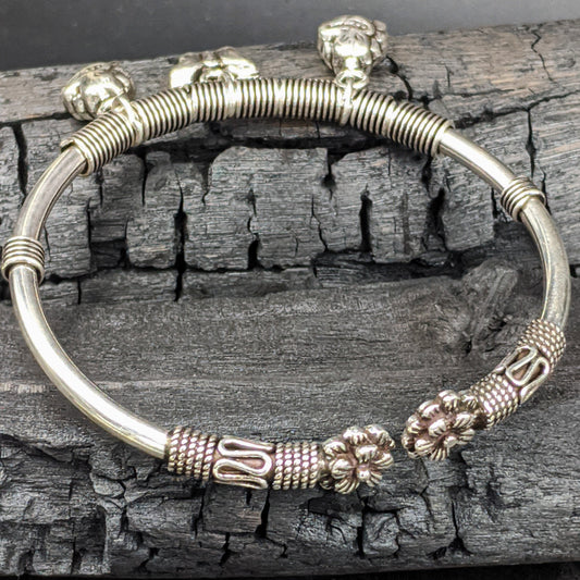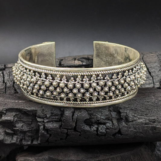 Reminiscent of the moon playing peek-a-boo from behind the dark monsoon clouds, dotted with vibrant colors enameled on a canvas of sleek silver cut out to perfection, these are the pieces you'll reach for time and again. A renewed take on indigenous baubles, these silver tasteful pieces' pair equally well with anti-fit dresses or sarees.