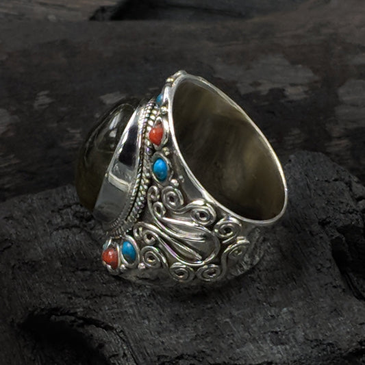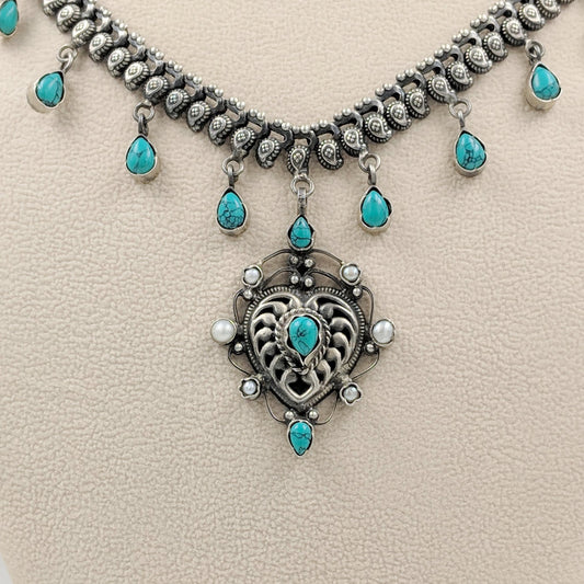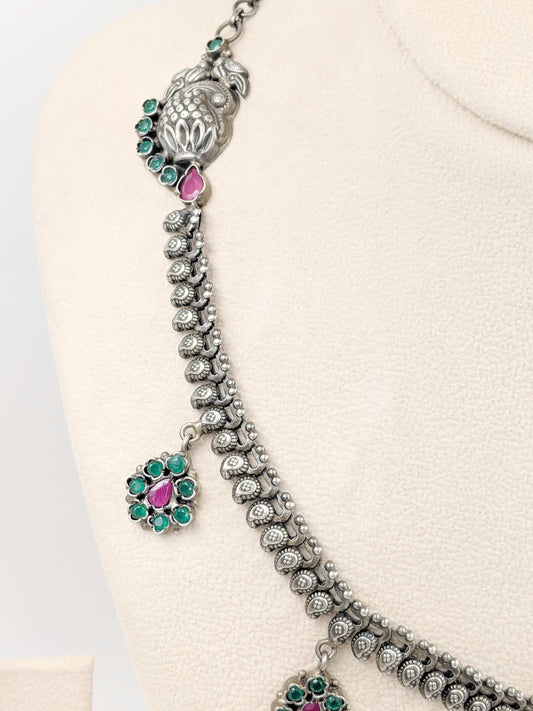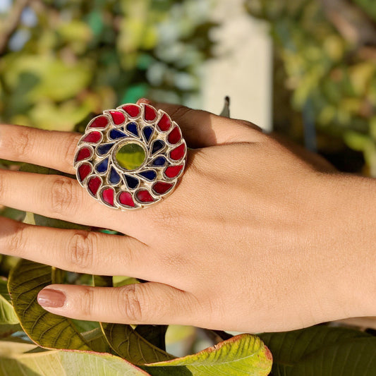 Reminiscent of the moon playing peek-a-boo from behind the dark monsoon clouds, dotted with vibrant colors enameled on a canvas of sleek silver cut out to perfection, these are the pieces you'll reach for time and again. A renewed take on indigenous baubles, these silver tasteful pieces' pair equally well with anti-fit dresses or sarees.