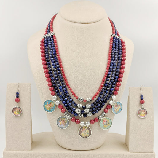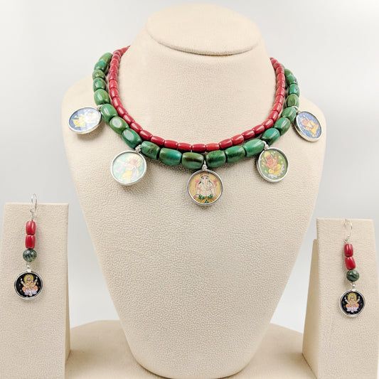 Ashwathama Handpainted Ganesh Laxmi Moonga Necklace With Earrings