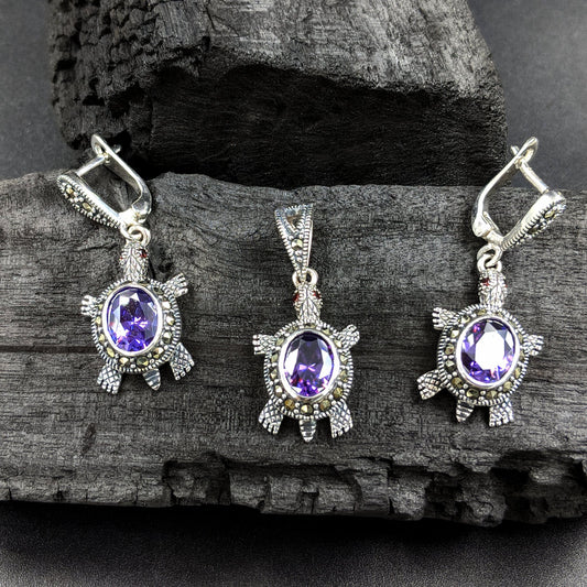 Ashwathama Tortoise Pendant and Earrings Set - Purple