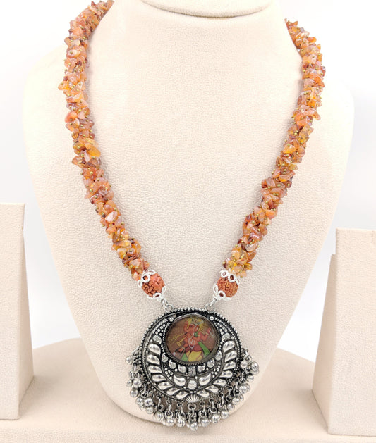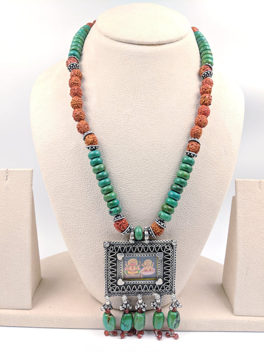 Ashwathama Handpainted Lakshmi Ganesh Necklace with Earrings