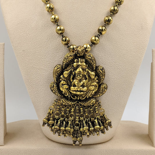 Ashwathama Temple Set With Silver Bead Chain - Gold Plated