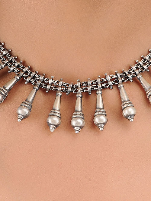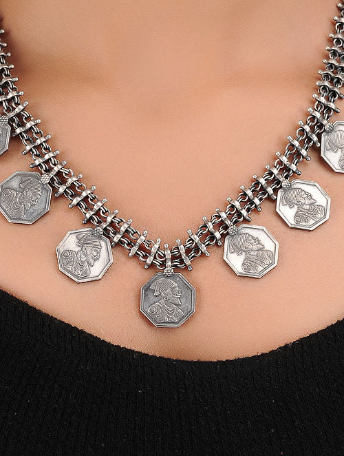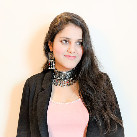 Reminiscent of the moon playing peek-a-boo from behind the dark monsoon clouds, dotted with vibrant colors enameled on a canvas of sleek silver cut out to perfection, these are the pieces you'll reach for time and again. A renewed take on indigenous baubles, these silver tasteful pieces' pair equally well with anti-fit dresses or sarees.