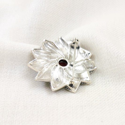 Marcasite Flower Orange Brooch and Pendant