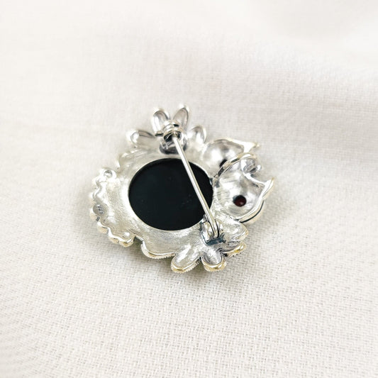 Marcasite Round Owl Black Brooch and Pendant