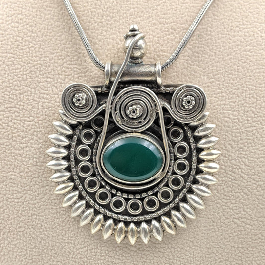 Shirisha Kawach Pendant - Green Stone with Silver Chain