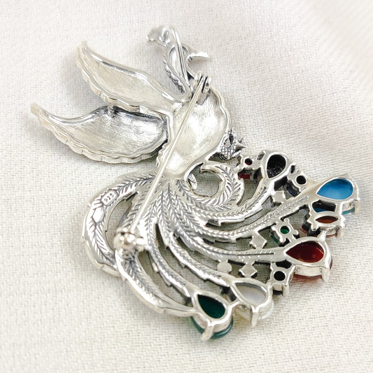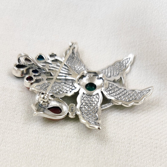 Marcasite Wings of a Feather Multicolored Brooch and Pendant