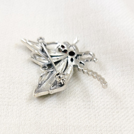 Marcasite Wings of a Feather Black Brooch and Pendant